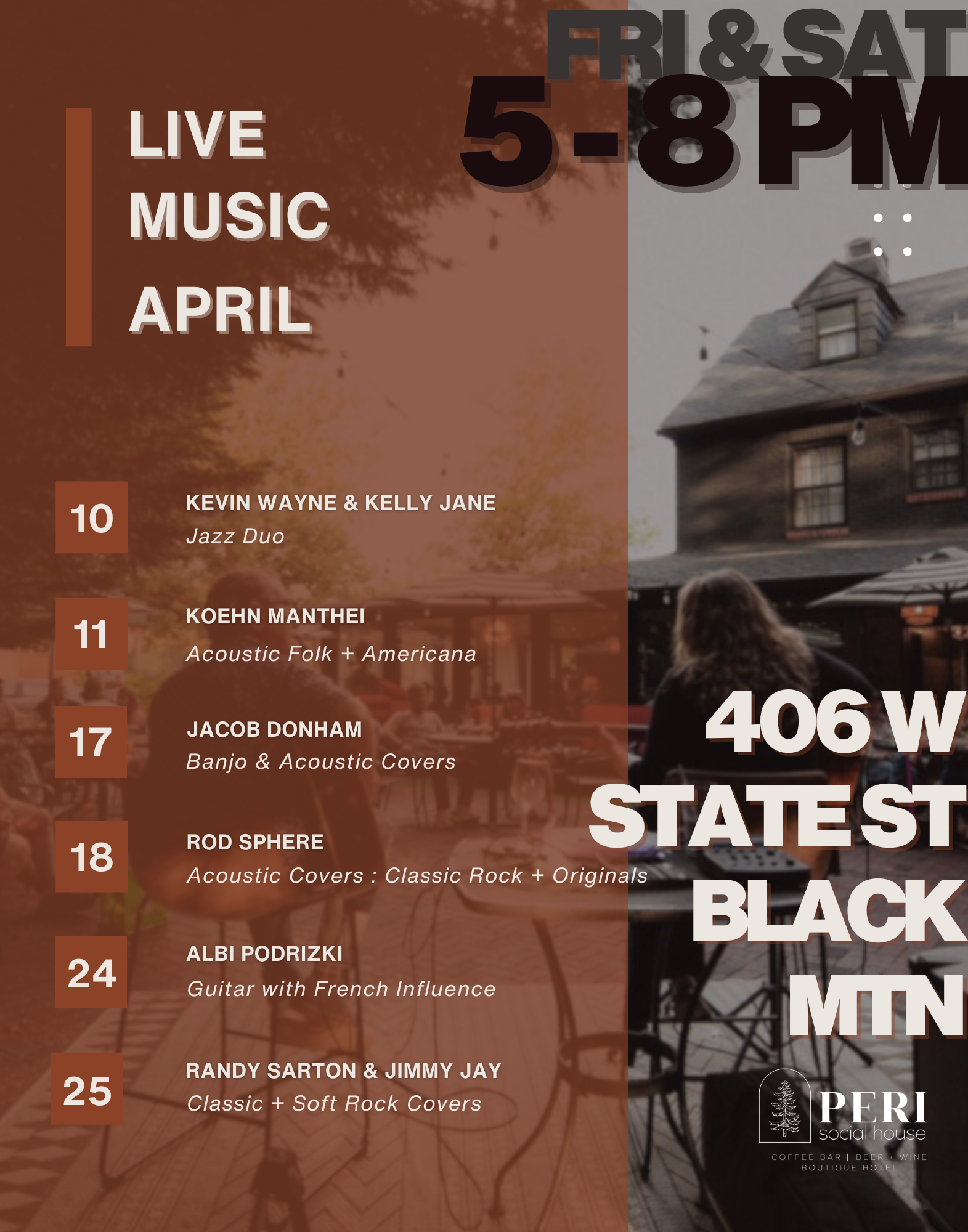 Back to All Events Live Music This Month Friday, April 3, 2026 5:00 PM Saturday, May 2, 2026 9:00 PM Google Calendar ICS