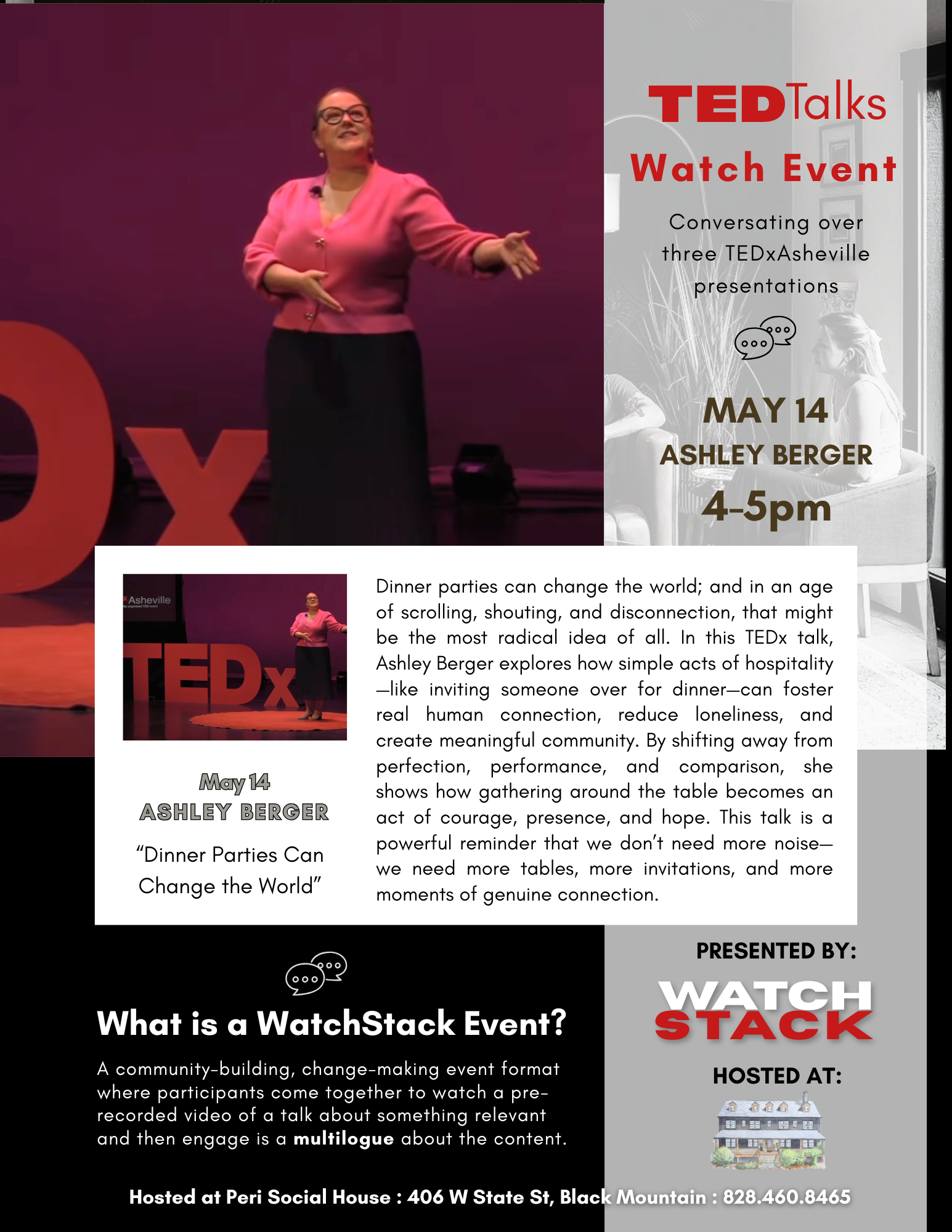 Dinner parties can change the world; and in an age of scrolling, shouting, and disconnection, that might be the most radical idea of all. In this TEDx talk, Ashley Berger explores how simple acts of hospitality—like inviting someone over for dinner—can foster real human connection, reduce loneliness, and create meaningful community. By shifting away from perfection, performance, and comparison, she shows how gathering around the table becomes an act of courage, presence, and hope. This talk is a powerful reminder that we don’t need more noise—we need more tables, more invitations, and more moments of genuine connection.