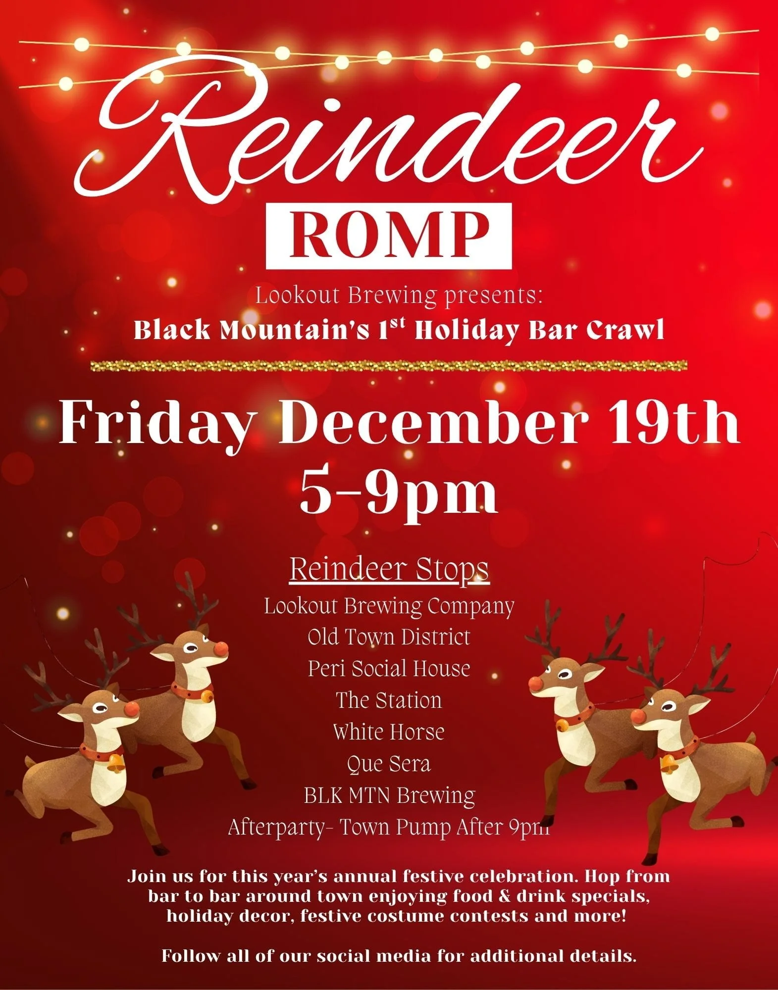 Join Black Mountain Brewing for a reindeer bar crawl through Black Mountain!